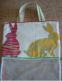 Мне очень понравилась ткань с зайками. Поэтому вчера сшила из этой ткани сумку для песочницы. Дно -сетка, чтобы песок высыпался, не оставался в сумке. Подклад из двунитки - сумка форму держит хорошо, застежка -молния. В будущем, думаю, можно ее использовать и как пляжную сумку, так как получилась она довольно вместительная.